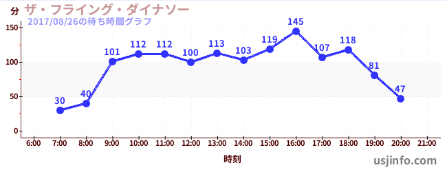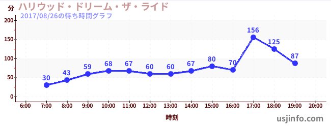 • ハリウッド・ドリーム・ザ・ライド$B$N(B2017年08月26日の待ち時間