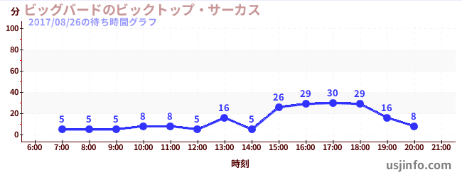 • ビッグバードのビックトップ・サーカス$B$N(B2017年08月26日の待ち時間