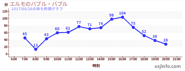 • エルモのバブル・バブル$B$N(B2017年08月26日の待ち時間