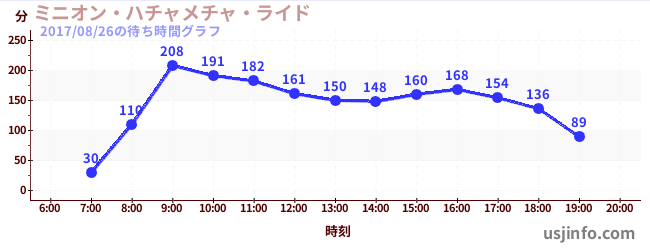 • ミニオン・ハチャメチャ・ライド$B$N(B2017年08月26日の待ち時間
