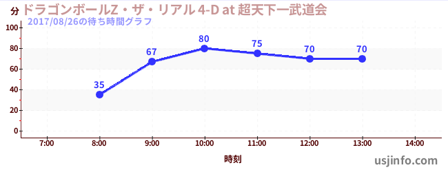 • ドラゴンボールZ・ザ・リアル 4-D at 超天下一武道会$B$N(B2017年08月26日の待ち時間