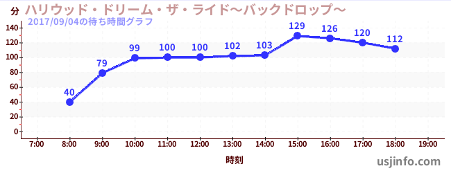 • ハリウッド・ドリーム・ザ・ライド〜バックドロップ〜$B$N(B2017年09月04日の待ち時間