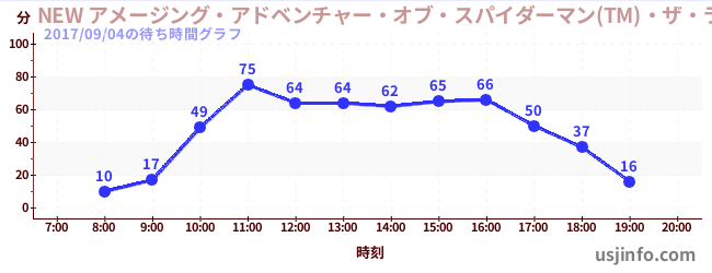 • NEW アメージング・アドベンチャー・オブ・スパイダーマン(TM)・ザ・ライド 4K3D$B$N(B2017年09月04日の待ち時間