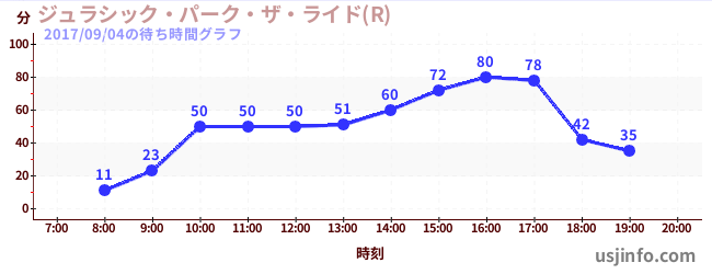 • ジュラシック・パーク・ザ・ライド(R)$B$N(B2017年09月04日の待ち時間