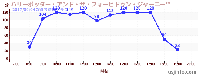 • ハリーポッター・アンド・ザ・フォービドゥン・ジャーニー™$B$N(B2017年09月04日の待ち時間