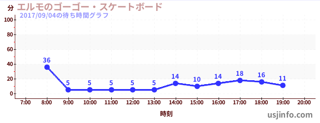 • エルモのゴーゴー・スケートボード$B$N(B2017年09月04日の待ち時間
