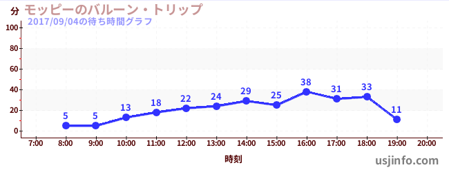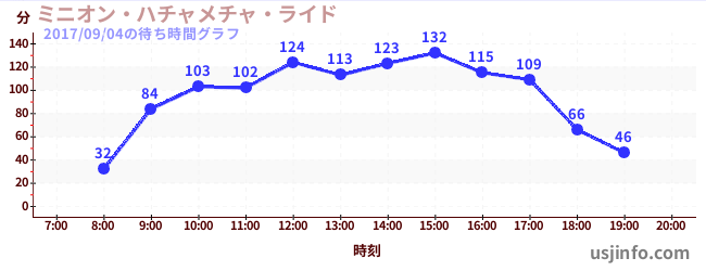 • ミニオン・ハチャメチャ・ライド$B$N(B2017年09月04日の待ち時間