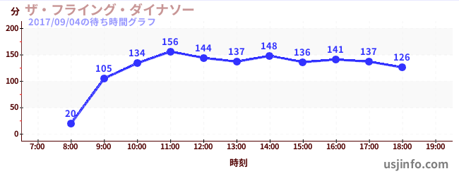• ザ・フライング・ダイナソー$B$N(B2017年09月04日の待ち時間