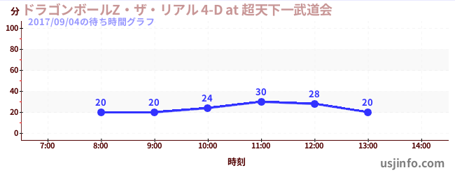 • ドラゴンボールZ・ザ・リアル 4-D at 超天下一武道会$B$N(B2017年09月04日の待ち時間