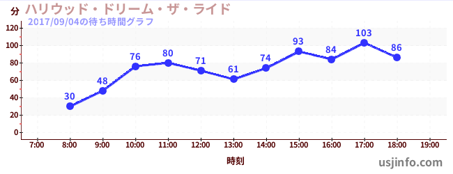 • ハリウッド・ドリーム・ザ・ライド$B$N(B2017年09月04日の待ち時間
