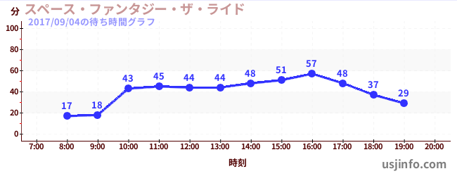 • スペース・ファンタジー・ザ・ライド$B$N(B2017年09月04日の待ち時間