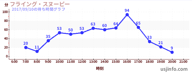 • フライング・スヌーピー$B$N(B2017年09月10日の待ち時間