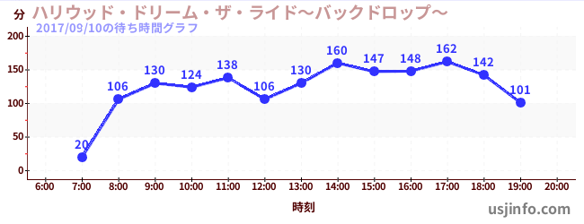 • ハリウッド・ドリーム・ザ・ライド〜バックドロップ〜$B$N(B2017年09月10日の待ち時間