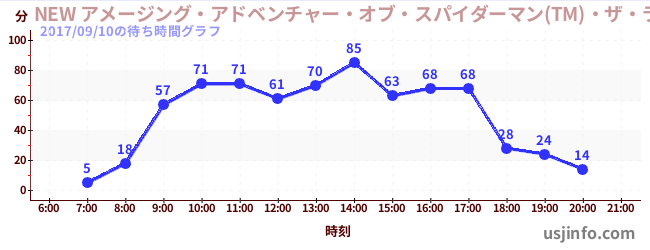 • NEW アメージング・アドベンチャー・オブ・スパイダーマン(TM)・ザ・ライド 4K3D$B$N(B2017年09月10日の待ち時間