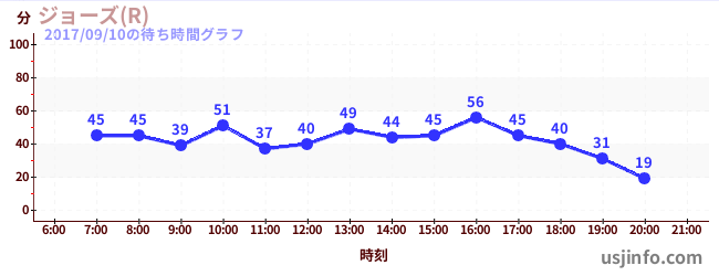 • ジョーズ(R)$B$N(B2017年09月10日の待ち時間