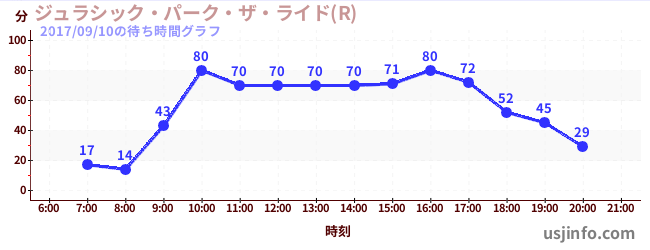 • ジュラシック・パーク・ザ・ライド(R)$B$N(B2017年09月10日の待ち時間