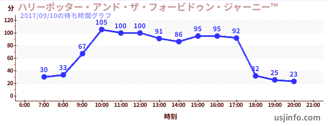 • ハリーポッター・アンド・ザ・フォービドゥン・ジャーニー™$B$N(B2017年09月10日の待ち時間