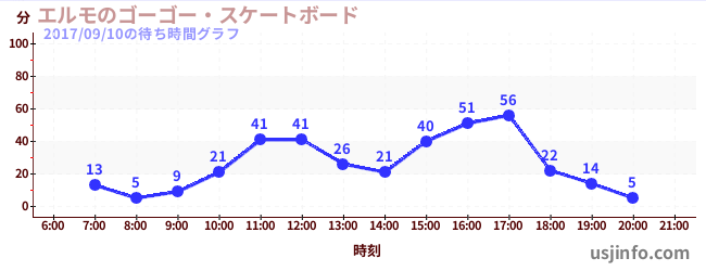 • エルモのゴーゴー・スケートボード$B$N(B2017年09月10日の待ち時間