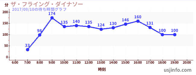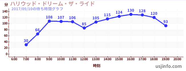 • ハリウッド・ドリーム・ザ・ライド$B$N(B2017年09月10日の待ち時間