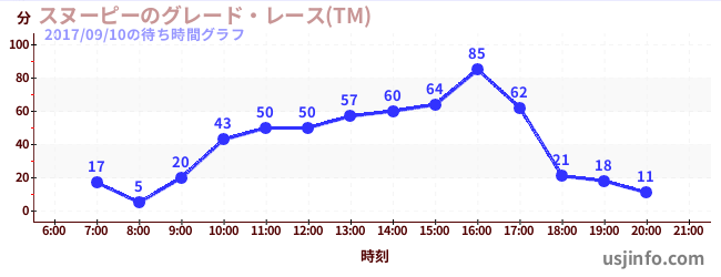 • スヌーピーのグレード・レース(TM)$B$N(B2017年09月10日の待ち時間