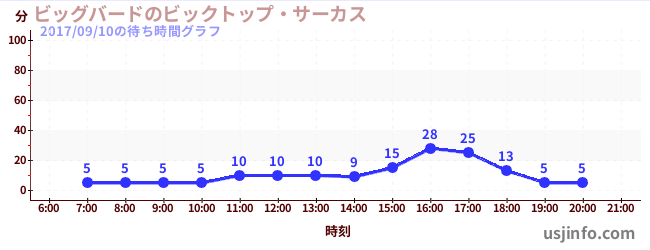• ビッグバードのビックトップ・サーカス$B$N(B2017年09月10日の待ち時間
