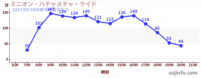 • ミニオン・ハチャメチャ・ライド$B$N(B2017年09月10日の待ち時間