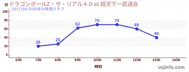 • ドラゴンボールZ・ザ・リアル 4-D at 超天下一武道会$B$N(B2017年09月10日の待ち時間