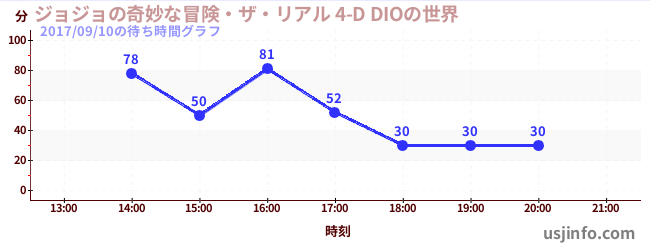 • ジョジョの奇妙な冒険・ザ・リアル 4-D DIOの世界$B$N(B2017年09月10日の待ち時間