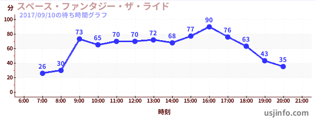 • スペース・ファンタジー・ザ・ライド$B$N(B2017年09月10日の待ち時間