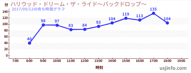 • ハリウッド・ドリーム・ザ・ライド〜バックドロップ〜$B$N(B2017年09月12日の待ち時間