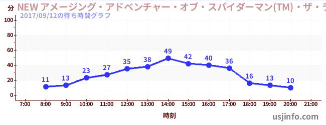 • NEW アメージング・アドベンチャー・オブ・スパイダーマン(TM)・ザ・ライド 4K3D$B$N(B2017年09月12日の待ち時間