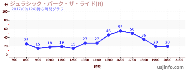 • ジュラシック・パーク・ザ・ライド(R)$B$N(B2017年09月12日の待ち時間