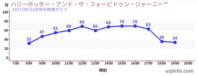 • ハリーポッター・アンド・ザ・フォービドゥン・ジャーニー™$B$N(B2017年09月12日の待ち時間