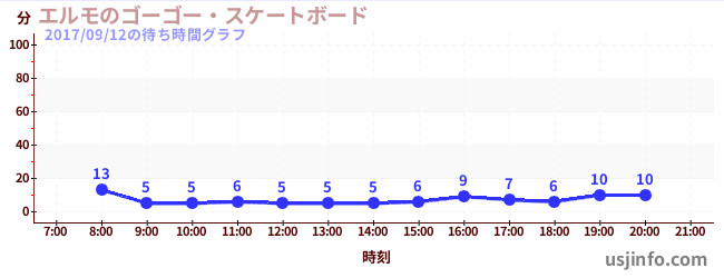 • エルモのゴーゴー・スケートボード$B$N(B2017年09月12日の待ち時間