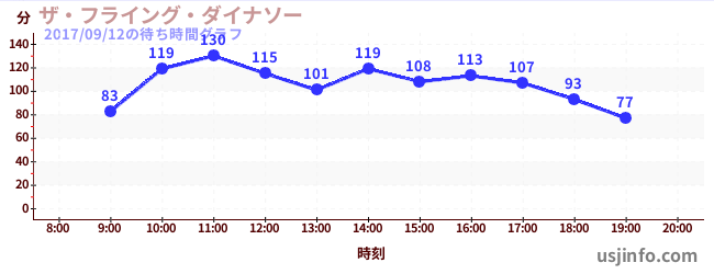 • ザ・フライング・ダイナソー$B$N(B2017年09月12日の待ち時間