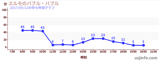 • エルモのバブル・バブル$B$N(B2017年09月12日の待ち時間