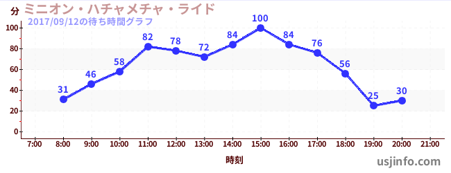 • ミニオン・ハチャメチャ・ライド$B$N(B2017年09月12日の待ち時間