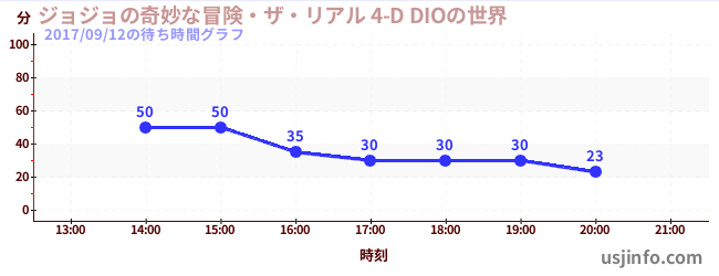 • ジョジョの奇妙な冒険・ザ・リアル 4-D DIOの世界$B$N(B2017年09月12日の待ち時間