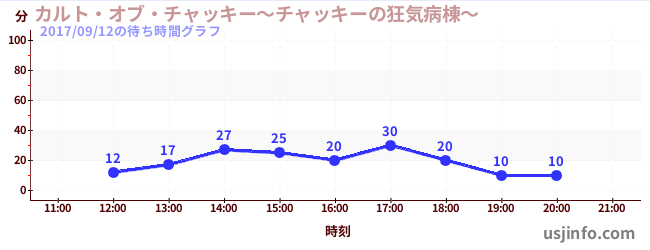 • カルト・オブ・チャッキー~チャッキーの狂気病棟~$B$N(B2017年09月12日の待ち時間