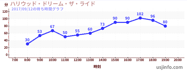 • ハリウッド・ドリーム・ザ・ライド$B$N(B2017年09月12日の待ち時間