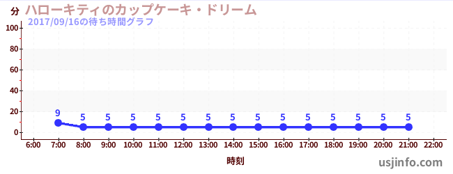 • ハローキティのカップケーキ・ドリーム$B$N(B2017年09月16日の待ち時間