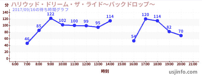 • ハリウッド・ドリーム・ザ・ライド〜バックドロップ〜$B$N(B2017年09月16日の待ち時間