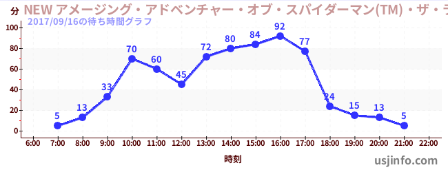 • NEW アメージング・アドベンチャー・オブ・スパイダーマン(TM)・ザ・ライド 4K3D$B$N(B2017年09月16日の待ち時間