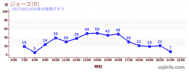 • ジョーズ(R)$B$N(B2017年09月16日の待ち時間