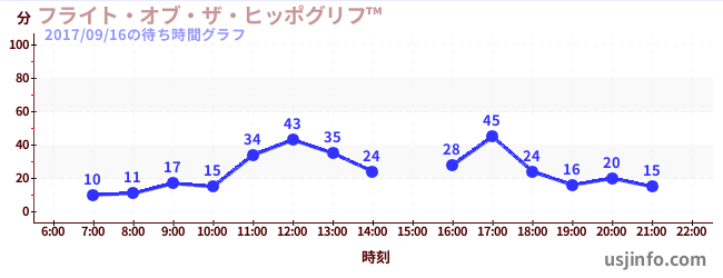 • フライト・オブ・ザ・ヒッポグリフ™$B$N(B2017年09月16日の待ち時間