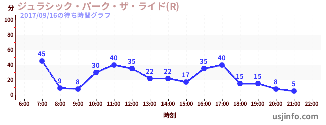 • ジュラシック・パーク・ザ・ライド(R)$B$N(B2017年09月16日の待ち時間