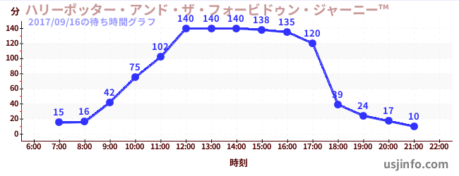 • ハリーポッター・アンド・ザ・フォービドゥン・ジャーニー™$B$N(B2017年09月16日の待ち時間
