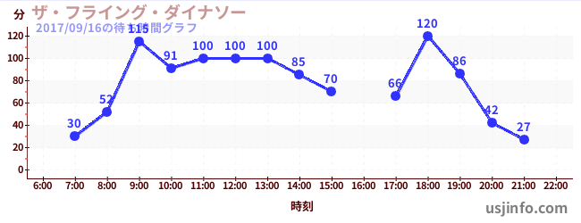 • ザ・フライング・ダイナソー$B$N(B2017年09月16日の待ち時間