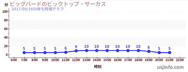 • ビッグバードのビックトップ・サーカス$B$N(B2017年09月16日の待ち時間