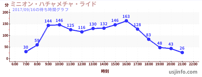 • ミニオン・ハチャメチャ・ライド$B$N(B2017年09月16日の待ち時間